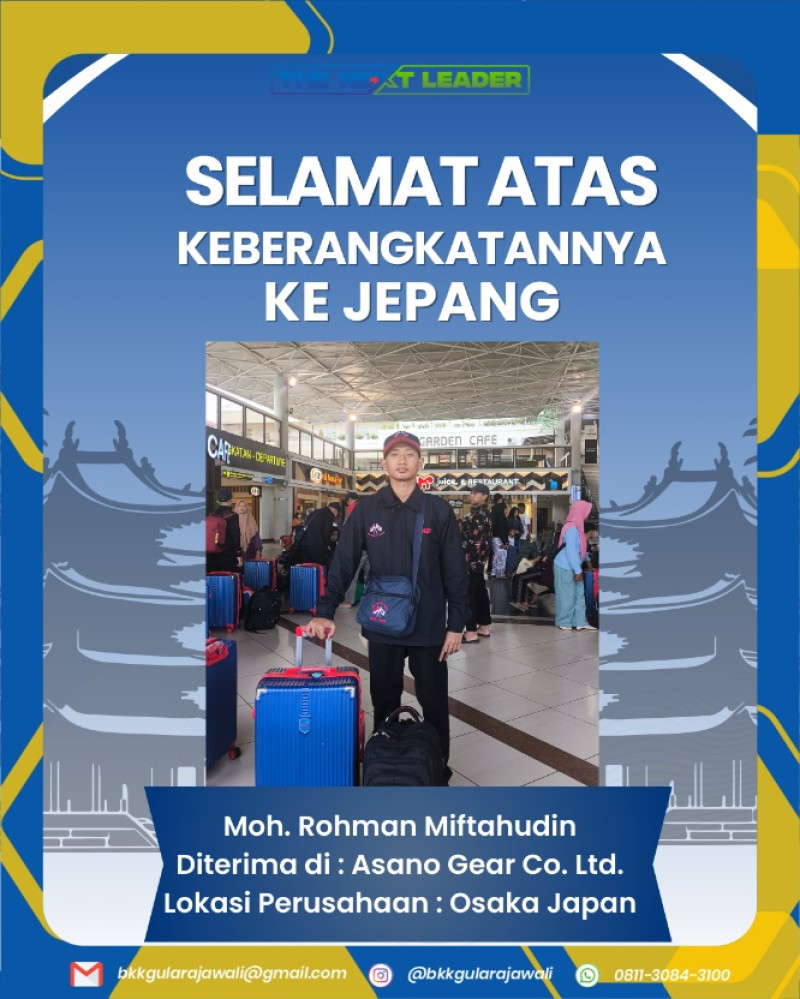 Kami bangga mengumumkan keberangkatan alumni terbaik SMK Gula Rajawali yang lolos seleksi ketat dan siap bekerja di industri Asano Gear Co.Ltd. Osaka Jepang melalui PT.JIAEC